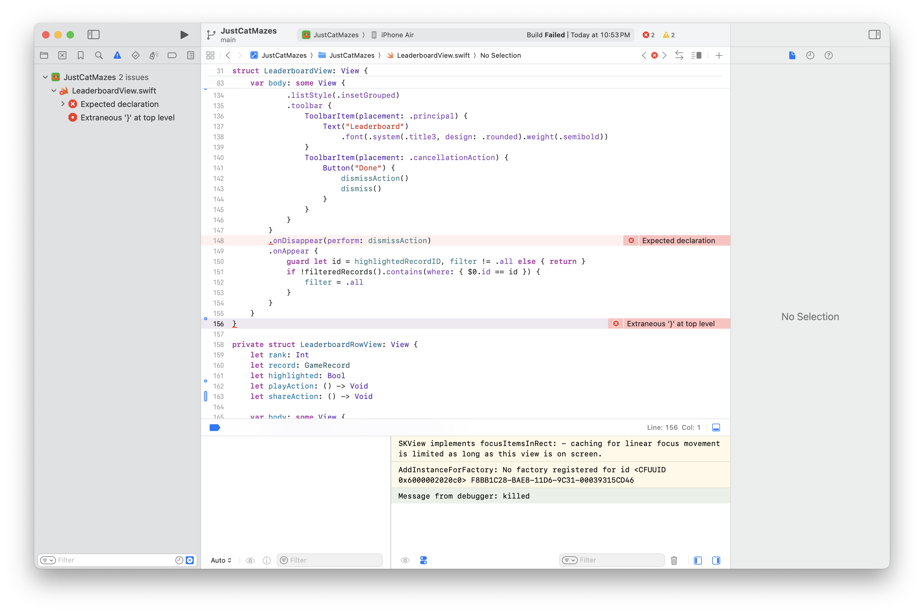 AI seems to have no qualms adding duplicate named functions. You can see in this example that a second layoutDifficultyLable() function has been added, resulting in a compiler error.